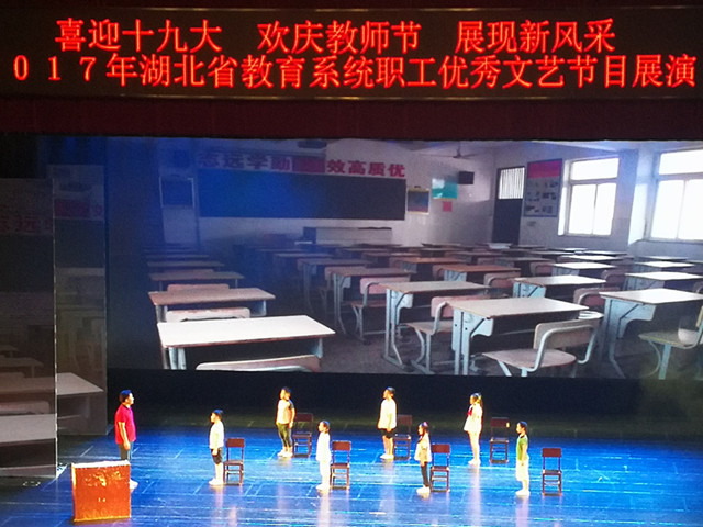 展演现场,武汉大学诗朗诵《我亲爱的祖国》、长江大学歌舞《浪遏飞舟》、黄石市教育工会话剧《最后一堂课》、武汉市长春街小学联唱《京剧荟萃》等节目精彩纷呈,内容丰富,高潮迭起,感染力强,充分体现了“喜迎十九大,欢庆教师节,展现新风采”的主题,全面展示了湖北省教职工孜孜以求、大爱无疆、无私奉献的精神。(图片:李道君)