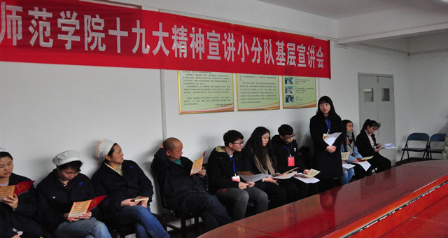 “党的十九大主要成果是什么?”一职工抛出问题。“再一次重申了以习近平同志为核心的党中央领导集体的地位,形成了习近平新时代中国特色社会主义思想,中国特色社会主义建设进入新时代。”2015级思想政治教育专业刘思源脱口而出,赢得阵阵掌声。