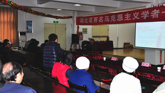 本网讯(记者严领)12月13日下午,湖北省百名马克思主义学者十九大精神宣讲报告会在武汉裕大华纺织服装集团有限公司三楼会议室举行。省委讲师团“理论热点面对面”专家组成员、我校马克思主义学院教授黄红发作了题为“新时代、新思想、新目标、新征程”专题报告,分享了学习党的十九大精神的新感悟新体会。