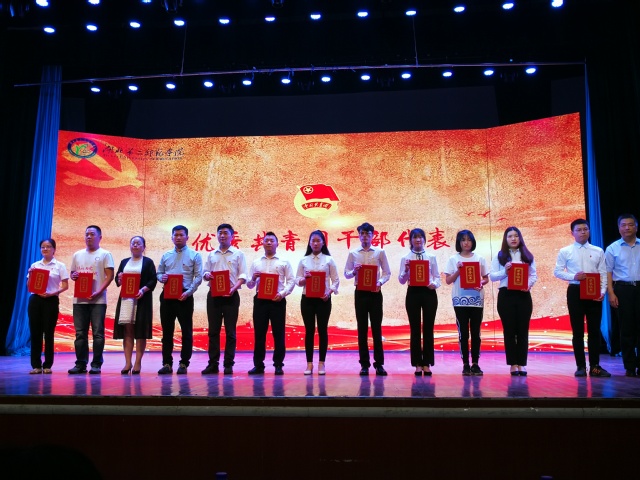 本网讯(通讯员 余婵)5月16日下午,我校在大礼堂举办“五四表彰暨第六届青春榜样年度人物颁奖典礼”。党委书记张国秀等我校主要领导、各学院各职能部门主要负责人出席典礼,我院党总支书记尹德蓉、院长黄红发、副书记宋平、副院长张玲等人出席典礼,各学院共青团员代表参加。