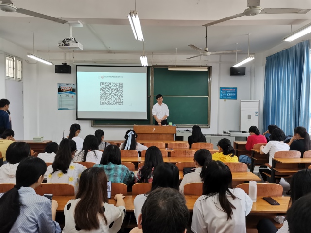 随后,他就“如何择校择专业”展开讲解。“你应当清楚自己能考什么专业、兴趣爱好是什么……”通过实例讲解,他向在座学生讲述选择考研方向的重要性,并建议考研学生延长备考时间。