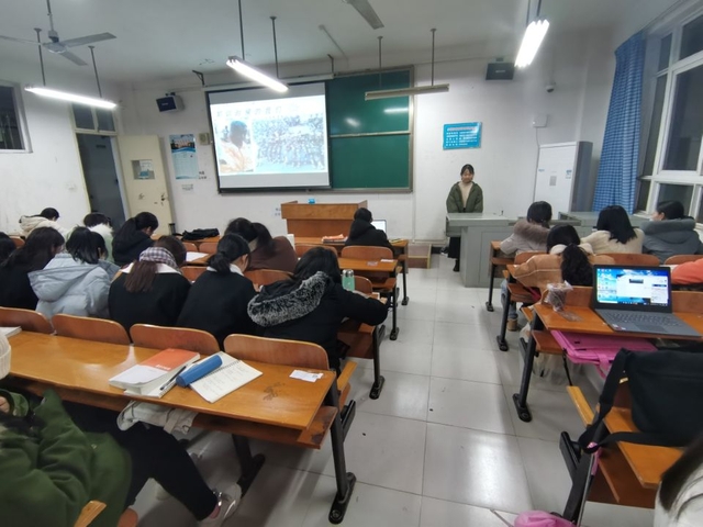 本网讯(融媒体记者 易娉羽)12月15日晚,我院2019级思想政治教育1班在二号教学楼2201教室开展以“我们”为主题的心理班会,2019级思想政治教育1班心理委员孙佳主持。孙佳首先为全体学生展示运动会、军训、合唱比赛中的班级合影照片,引导在座学生回顾班级重大事件。