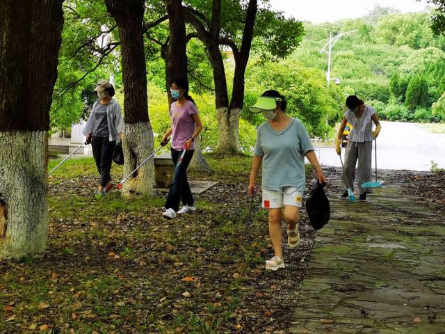 6月17日下午,马院全体返岗行政人员在副校长黄颂的带领下在包干区进行卫生清扫。三鉴池边路上的小纸屑被捏起、勤人坡小道上的枯树枝被移走、遗弃已久的竹扫帚被捡起……大家认认真真、一丝不苟,汗水早已打湿了口罩和衣服,想到同学们会在这里穿着学士服合影留念,再辛苦也值得!