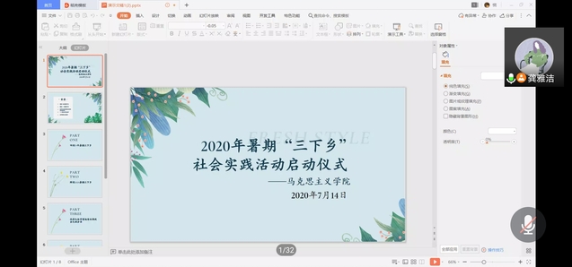 本网讯(通讯员李婷婷 余婵)7月14日晚,马克思主义学院通过线上腾讯会议举办2020年暑期“三下乡”社会实践活动启动仪式”,马克思主义学院党总支副书记宋平、学工办主任樊勇、辅导员王一与会,2018级思想政治教育1班、2019级思想政治教育1班全体学生参加。