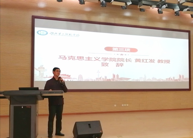 首先,院长黄红发介绍我院几大亮点,他指出我院拥有“黄大年”式教师团队、湖北省一流本科专业,毕业生就业率高达99%,考研率连续七年位列全校第一,来到马院是完全正确的选择。他对新生们提出三点希望:一要尽早确定专业目标,二要有切实可行的学习计划,三要有出彩的专业成绩表现。