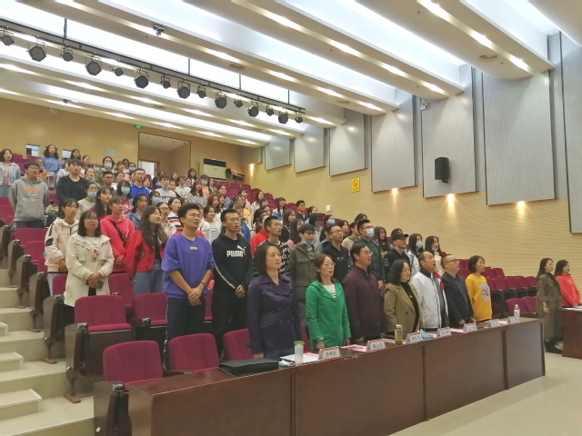 典礼伊始,全体成员高唱国歌,观看我院宣传视频。