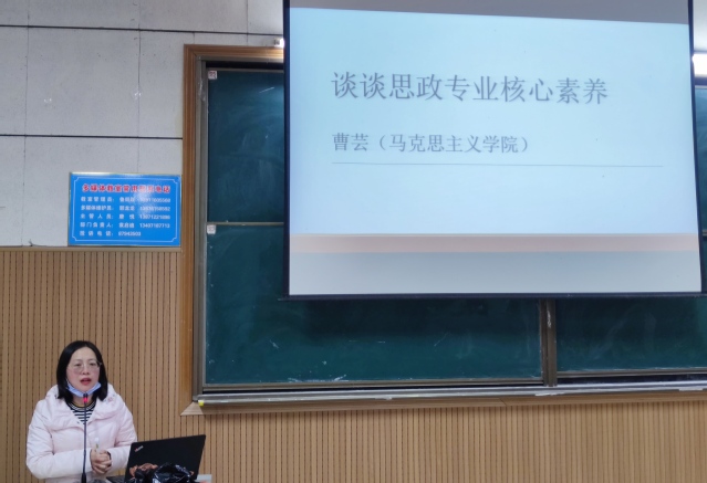 随后,曹芸带领在座学生回顾思想政治教育专业的发展历史,她结合历史与现实说明思想政治教育工作的重要地位以及思想政治教育学科的教学任务与教学理念,希望同学们能够在大学四年中积极主动地完成本专业的学习任务。