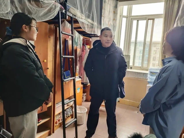 领导老师一行到中区一栋和四栋学生寝室进行走访。走访过程中,林志红提醒学生注意消防、财产、网络安全,并与学生亲切交谈,关心学生生活、学习情况以及心理情况。在走访男生寝室时,他格外强调不要外出酗酒,警惕网络安全问题;在女生寝室,领导老师要求大家禁止使用卷发棒、暖水袋等大功率电器,提高消防安全意识。对于2020级新生,林志红亲切询问期末考试复习情况并给予建议。另外,领导老师对于获得“优秀寝室”称号的寝室给予肯定并勉励他们继续保持。