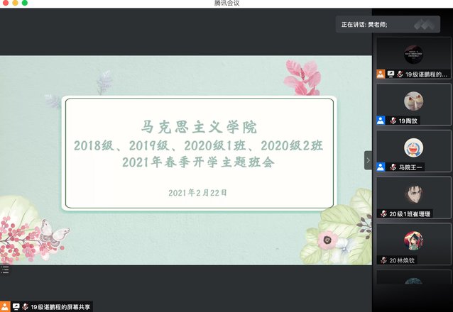 本网讯(通讯员周媛)2月22日晚,我院举行春季开学线上主题班会,我院党总支副书记宋平、学工办主任樊勇、辅导员王一以及我院全体学生参加会议。