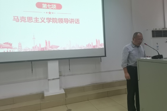 校学生会代表黄一帆致辞。他首先对我院第三次学生代表大会的顺利召开表示热烈的祝贺。随后,他讲到,我院此次学生代表大会的召开是对我校学生会工作的支持与肯定,是我院建设发展的进步与体现。“希望马院今后能够以本次大会为契机,不断加强自身建设,进一步创新和发展,谱写新时代新篇章,共同建设美好未来”,黄一帆说道。