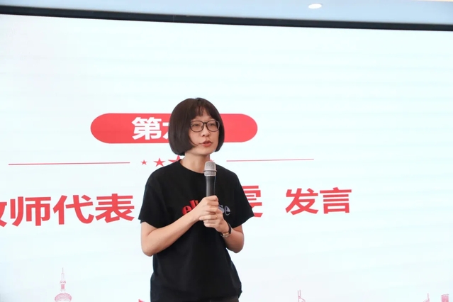 教师代表刘雯发言。她与全体新生分享几点心得:一是明确目标,志存高远;二是学会自主学习;三是完善自我建设。同时祝福2021级新生可以在大学做到不负青春、不负韶华。