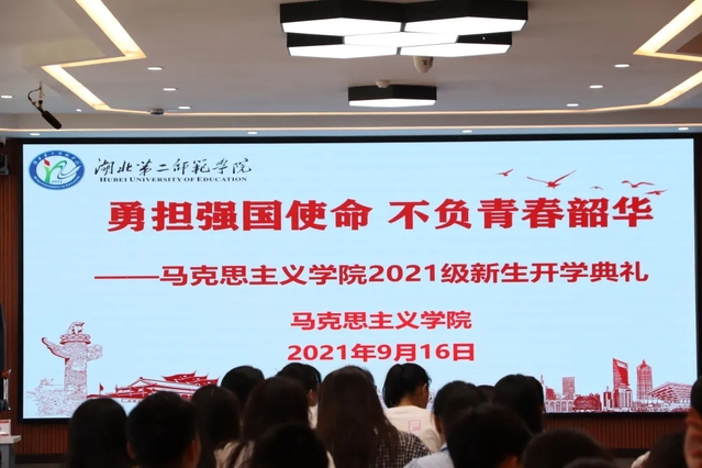 本网讯(通讯员张晓云)9月16日下午2:30,我院在一号楼6楼“数字马院”教室开展2021年新生开学典礼暨新生专业教育,校党委常委、副校长黄颂,党委组织部副部长刘锐,我院全体领导班子成员及教师代表、2021级全体新生参加典礼。辅导员王一主持典礼。