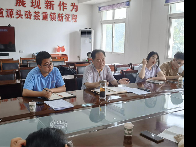 随后,课题组成员与江辉书记就访谈问题进行了深入的交流,尹德蓉教授强调“产业振兴是乡村振兴的关键,赵李桥茶产业闻名全国,是重点调研对象。”贺海波副教授向江辉书记具体询问了党建引领和乡村振兴之间的关系,了解目前乡村振兴面临的难题。课题组成员深入了解赵李桥镇基层党建与乡村振兴工作中的亮点与不足,也为赤壁市后续的调研工作展开了规划。