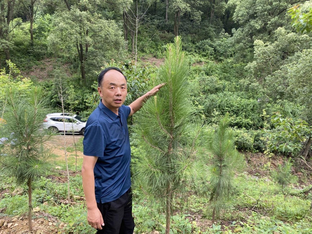 随后,团队一行人跟随着高场长的脚步向嵩阳林场深处进发。“这一片树林是去年武汉市民所栽种的,是引进的银杏,经过一年的生长和观察,我们发现其成活率较高,生长情况也较好。这一次的引进成功也有利于林区森林质量的精准提升。”高场长望着一棵棵银杏树苗说道,“其实我们引进树苗也是有之前失败的教训的……刚开始建设林场的时候,上级只要求种植一种树木,最后因天灾导致一场生态破坏。后来,我们开始采用混合制林区,即在林区内引进多种树木,维持生态系统的平衡,提高生态系统的抵抗力,现在林区的生态环境也越来越好了。”