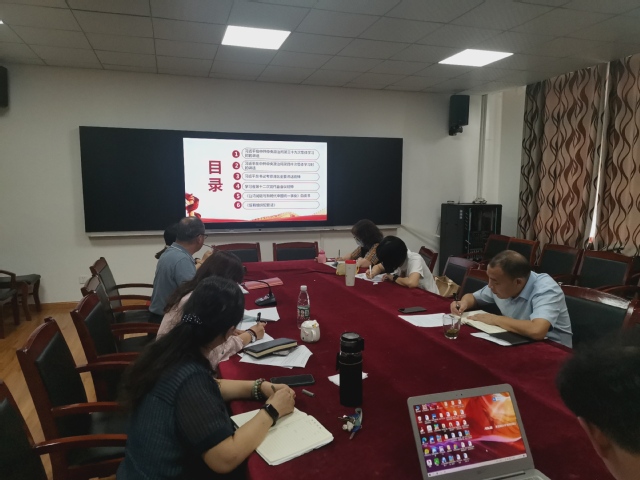 马院党总支书记林志红主持本次活动,求真党支部书记曹芸做主题发言,除参加学校其他会议人员外,马院领导班子成员、“三办”主任、支部书记、总支委员以及专职组织员共计12人参加了学习。