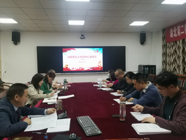 本网讯(通讯员胡蓉)10月27日下午,马克思主义学院在会议室召开党总支理论学习中心组学习会,认真学习习近平总书记在中国共产党第二十次全国代表大会上所作的报告、习近平在省部级主要领导干部“学习习近平总书记重要讲话精神,迎接党的二十大”专题研讨班上重要讲话精神,并学习《开展共同缔造,创新社区治理》专题报告。党总支书记金殿中领学,学院领导班子成员、总支委员、专职组织员、各支部书记及党政办公室、教学办公室、学生办公室主管参加了学习。