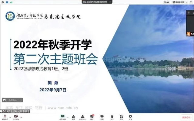 9月7日晚,我院召开2022级思想政治教育专业新生第二次线上班会,我院学工办主任樊勇主持会议,2022级思想政治教育专业全体新生参与班会。