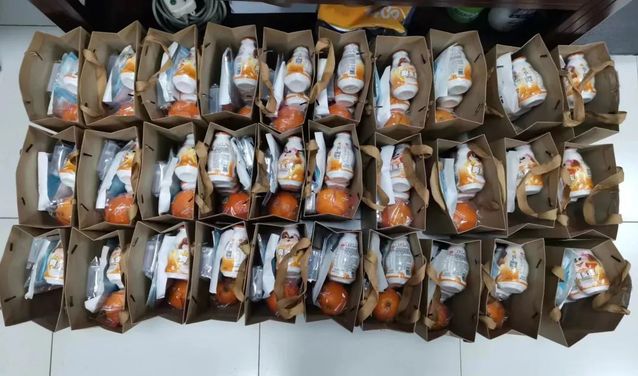 据悉,湖北第二师范学院马克思主义学院为考研学子送祝福活动已连续开展四年,前期已经开展考研冲刺指导会。每年的考研大礼包一直是马克思主义学院学生工作的特色亮点,既体现独特的人文关怀,又符合学生的受众喜好,更融入思政育人的理念精髓。今年的考研大礼包包括:印有“逢考必过”的定制口罩、N95口罩、一个心想事“橙”、 一枚“成功上岸”定制书签、一套“旗开得胜”考试文具,一版“爽歪歪”娃哈哈。