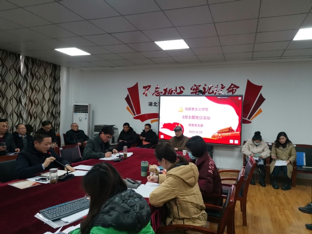 本网讯(通讯员胡蓉)2月23日下午,湖北第二师范学院马克思主义学院(后简称“马院”)“黄大年”教师党支部、求真教师党支部、学生党支部以“坚定不移推进全面从严治党”为主题,联合开展支部主题党日活动。湖北第二师范学院校党委常委、副校长黄颂参加,马院党总支书记金殿中主持。