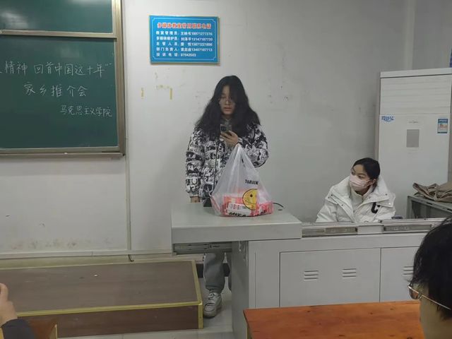 2月23日下午,以“学习贯彻二十大•喜看家乡这十年”为主题的家乡推介会在二号教学楼2214教室成功举办。2022级思想政治教育专业全体学生通过视频、PPT等多种形式向大家分享自己眼中家乡的新发展、新变化,感悟“非凡十年”里的“中国成就”,深入学习党的二十大精神,将报告精神付诸行动。马克思主义学院学工办主任樊勇到场参会,2022级思想政治教育1班陈怡帆、2班彭静唯主持活动。