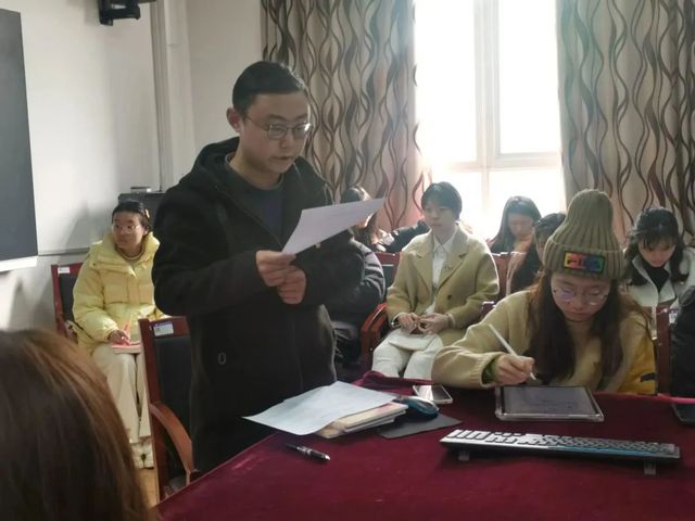 首先,樊勇进行述职。他从以下四个方面展开:一是要抓好理论学习,提升党员能力素质,学习贯彻二十大精神;二是发挥思政专业优势,为党员工作做出贡献;三是加强思想引领,召开党史活动,引导学生树立正确的三观;四是强化意识形态教育,进行师德师风建设。“在党的建设质量和水平方面我们取得了显著的成果,但仍存在理论学习不足、学习深度和力度不够等问题,应不断整合学习资源、打造活动阵地、推进建设深入发展”,他在讲话最后提到。