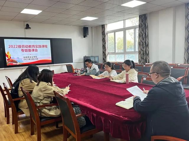 3月15日下午,马克思主义学院2022级思想政治教育劳动教育实践备课会在二号楼会议室召开,该课程授课老师樊勇主持。