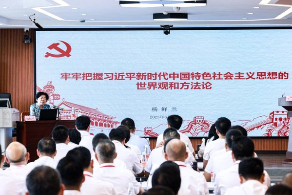 此次外训活动共计三天,以“加强流域综合治理,创新驱动高质量发展”为主题,以主旨报告、专题研讨的形式进行,邀请了杨鲜兰教授,武汉大学质量发展战略研究院院长、国家社科基金重大项目、教育部社科基金重大招标项目首席专家程虹教授,湖北省委讲师团专家、湖北省“一带一路”研究院院长秦尊文教授进行授课。课程围绕《习近平新时代中国特色社会主义思想的世界观方法论》《用创新驱动高质量发展》《以流域综合治理为基础推进四化同步发展》开展。