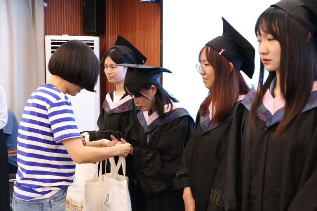 刘雯副院长为毕业生代表赠送毕业礼物,毕业生们怀着感恩与不舍之情接过礼物,也接过老师们的嘱咐和期许。
