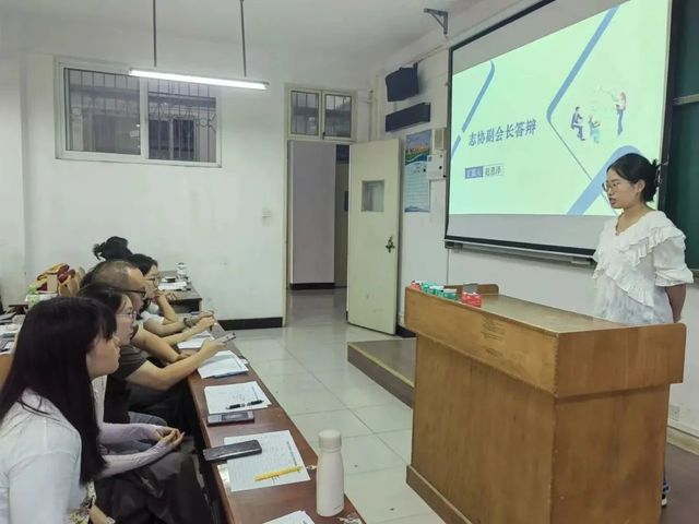 陈露对竞选分团委组织部部长的2022级思想政治教育3班何佳琳进行提问:之前并未在组织部工作过,你打算如何做好部门工作呢?“积极发挥好带头作用,充分了解部员的想法,及时召开例会,共同学习。”她答道。“能量+毅力,征服一切。希望借此机会,继续留在青年志愿者协会发光发热,为更多人服务,为马院建设贡献自己的力量。”竞选志协副会长的2022级思想政治教育1班许俊成说到。
