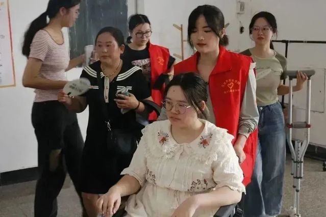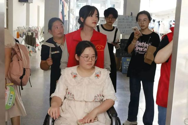 针对新生陶淑媛腿部骨折的特殊身体状况,一对一学姐和多名志愿者全程陪同,新生辅导员李佳在了解情况后第一时间赶往学生寝室,及时联系后勤工作人员及宿舍管理人员,帮助协调寝室的临时调配问题。志愿者们身体力行,纷纷帮助陶淑媛搬运行李、清理宿舍,尽最大努力方便新生的入住和生活。党总支书记金殿中了解情况后,对学生及家长进行了沟通交流,嘱咐学工的老师一定关照好陶同学。