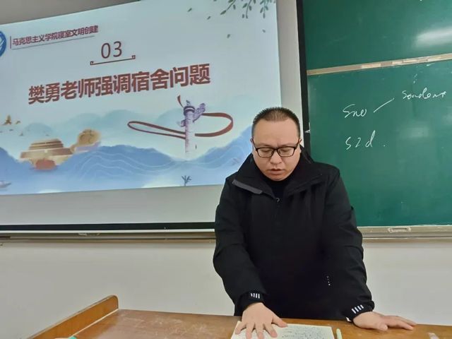 在安全主题教育班会上,樊勇依次谈到人身安全、财产安全、宿舍电器安全、假期出行安全等要点,他提醒大家假期出行期间一定要关注自身安全,这既是对自己负责,也是对家人朋友负责。李佳在走访宿舍时特别叮嘱同学们要注意宿舍安全问题,做好安全防范,有问题及时向辅导员、学院反馈,引导学生规范用电行为,遵守校规校纪,养成良好的生活卫生习惯。
