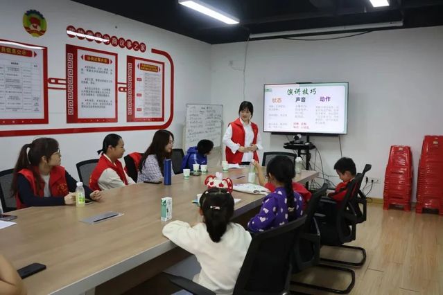 活动分为两项内容,一是演讲技巧课。为了提高孩子们的演讲能力,让孩子们从“敢于表达”到“乐于表达”,再到“善于表达”,2022级思想政治教育3班何佳琳为社区小朋友们讲解演讲的本质、特征与技巧,鼓励小朋友们积极上台演讲,增强他们的自信心。在课堂上,有多位小朋友上台展示自我,锻炼胆量,勇敢突破,不惧失败。
