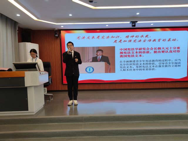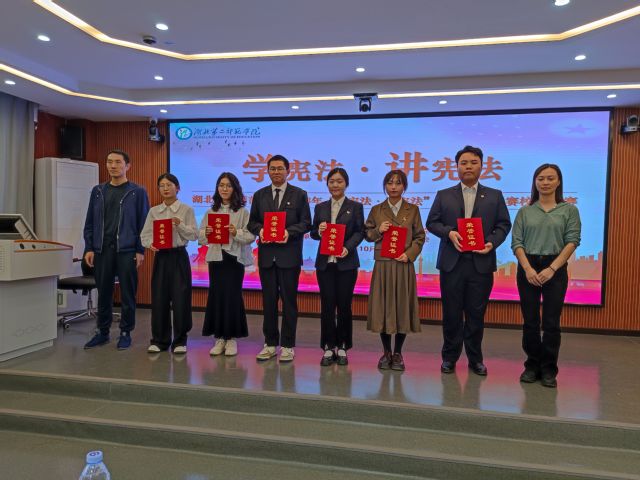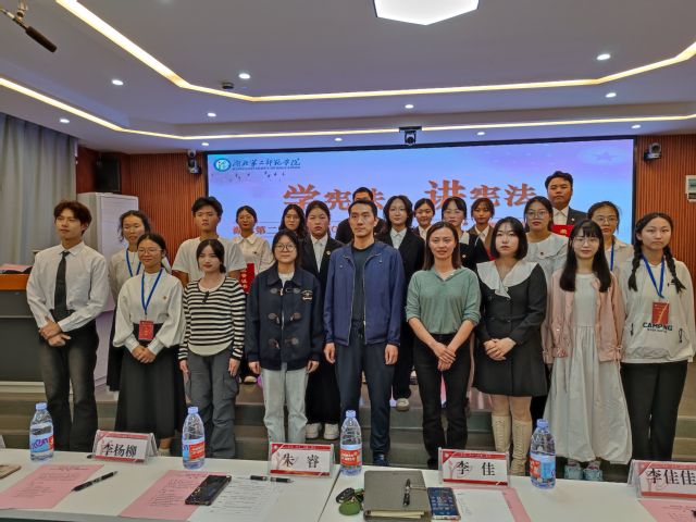10月24日下午,“学宪法·讲宪法”系列活动之宪法主题演讲比赛校级决赛在一号楼数字马院举行。马克思主义学院党总支副书记李佳,准律师协会指导老师朱睿,分团委学生副书记李杨柳,校学生会主席李佳佳,院学生会主席团成员陆火云,校团委学生社团联合会主席助理黄安琪担任评委。2022级思想政治教育1班张晟瑜担任主持人。