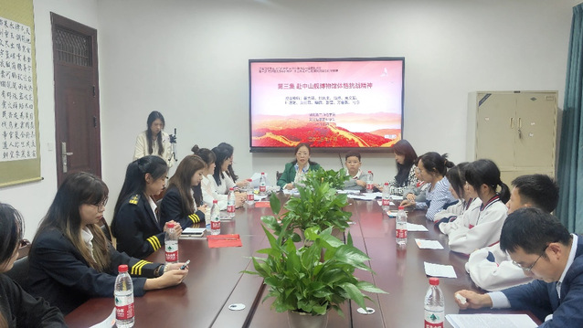 首先,开展了“舰证百年历史,体悟抗战精神”主题教学活动。师生们参观中山舰的历史陈列和出水文物,面向舰体倾听讲解员的解说。1938年10月24日,武汉沦陷前夕,中山舰在武汉金口水域巡防时遭遇日本飞机轰炸,最终沉没江底,20余名官兵壮烈牺牲,1997年中山舰整体打捞出水,2008年复原后的中山舰舰体陈列于中山舰博物馆。在现场授课环节中,湖北第二师范学院的刘志来老师用舰长萨师俊生动的抗战故事,解说中山舰官兵们的抗战精神,尚峰、叶道艳和吴文娟老师从多种角度解读了伟大的抗战精神。武汉海事职业学院的袁丽君老师介绍了金口抗战时中山舰的武器装备情况,引导同学们弘扬爱国主义精神。同学们表示,要牢记习近平总书记的嘱托,将伟大抗战精神内化于心,外化于行,弘扬爱国主义精神。