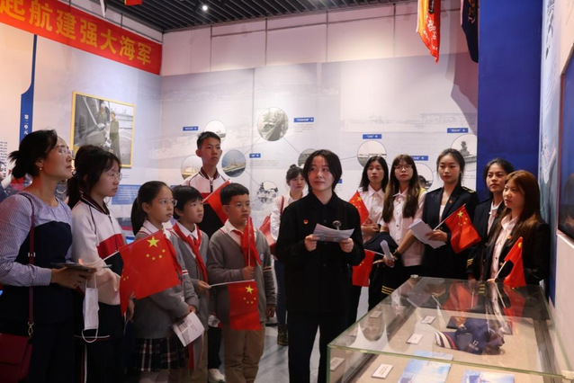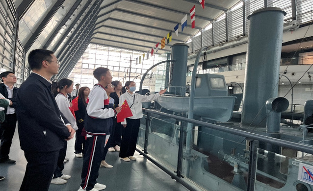 本网讯(通讯员刘志来 王明珠 欧阳熙蓓 董一晴)实现中华民族伟大复兴的中国梦,必须弘扬中国精神。习近平总书记曾指出,“建设强大的现代化海军是建设世界一流军队的重要标志,是建设海洋强国的战略支撑,是实现中华民族伟大复兴中国梦的重要组成部分。”习近平总书记在纪念中国人民抗日战争暨世界反法西斯战争胜利75周年座谈会上指出:“中国人民在抗日战争的壮阔进程中孕育出伟大抗战精神,向世界展示了天下兴亡、匹夫有责的爱国情怀,视死如归、宁死不屈的民族气节,不畏强暴、血战到底的英雄气概,百折不挠、坚忍不拔的必胜信念。” “伟大抗战精神,是中国人民弥足珍贵的精神财富,将永远激励中国人民克服一切艰难险阻、为实现中华民族伟大复兴而不懈奋斗。”为将习近平总书记这些重要讲话精神融入思政课实践教学,10月26日,湖北第二师范学院马克思主义学院携手武汉海事职业学院、武汉市光谷第三初级中学、武汉市光谷第十二小学师生,前往中山舰博物馆,开展了“大中小学同上一堂思政大课”的教学活动。