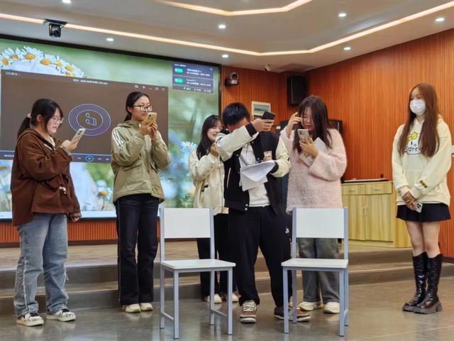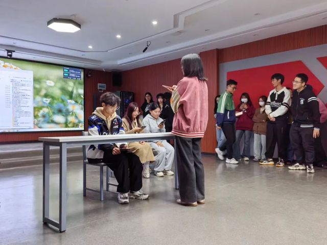 马克思主义学院于一号楼数字马院举行迎新晚会第一次彩排,分团委学生副书记李杨柳,学生会主席团成员吴兴宙、陆火云、胡蕊,新闻中心主任张奔月、副主任张新怡,诚信驿站会长秦欣怡,心协会长董一晴、副会长蹇蕾担任评委,所有参演人员到场,2022级、2023级部分学生到场观看。