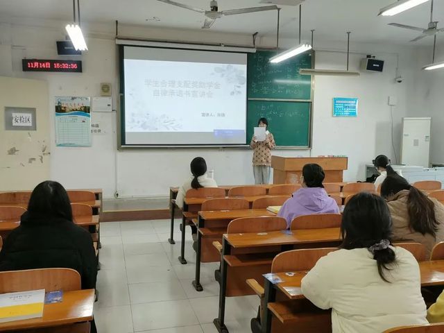 会议召开前,各班获奖受助学生宣读“学生合理支配奖助学金自律承诺书”并签字。承诺书的签署,有利于学生行为的规范和奖助学金的合理使用。