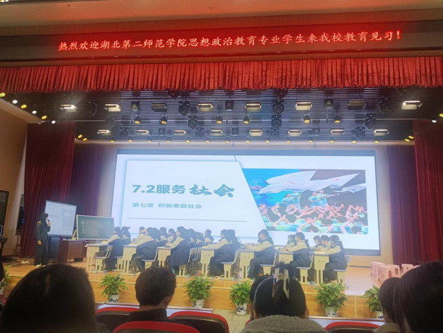 本网讯(通讯员邱海燕)为了培养师范生的教育情怀和教育创新意识,提高师范生的专业素养和教学能力,12月12日下午,湖北第二师范学院马克思主义学院组织2022级思想政治教育专业全体学生开展了教育见习活动。在马院副院长刘雯、党总支副书记李佳及尚峰、邱海燕、孔凡敏等老师带领下,同学们来到武汉市光谷第四初级中学观摩见习,真切接触到初中思政课教育教学真实情境,从中收获了丰富的教育理论知识和教学实践经验。