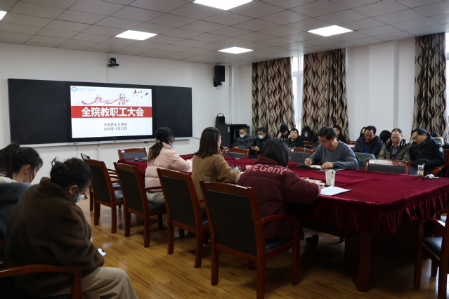 本网讯(通讯员何瑾)12月21日下午,马克思主义学院在会议室召开12月份教职工大会,会议由院长黄红发主持。