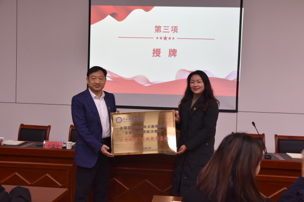 本网讯(通讯员 叶梦娇)12月28日,我校马克思主义学院与黄麻起义和鄂豫皖苏区革命历史纪念馆(以下简称“黄麻纪念园”)结对共建教育部“大思政课”实践教学基地授牌仪式在黄麻纪念园举行。党委常委、副校长田恒平,黄麻纪念园党委委员、副主任方彬共同为湖北第二师范学院“大思政课”实践教学基地揭牌。