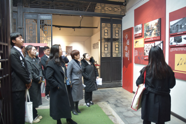再次,师生们来到黄麻起义策源地长胜街,它被誉为“革命博物馆”,保存着20多处革命遗迹。师生们通过参观长胜街的革命旧址,感悟到这条老街不仅见证了七里坪的历史沧桑,更是革命文化的见证者。肖潇、曹芸老师还结合马克思主义基本原理的知识和学生们讨论杰出人物、工会组织、红色政权发展的意义。长胜街如今既有革命旧址,也有应景的小商铺,用另一种方式讲述当年的红色故事。同学们认为此次实践教学活动,仿佛置身于历史的长河之中,在这里感受着红色文化的沉淀与历史的厚重。