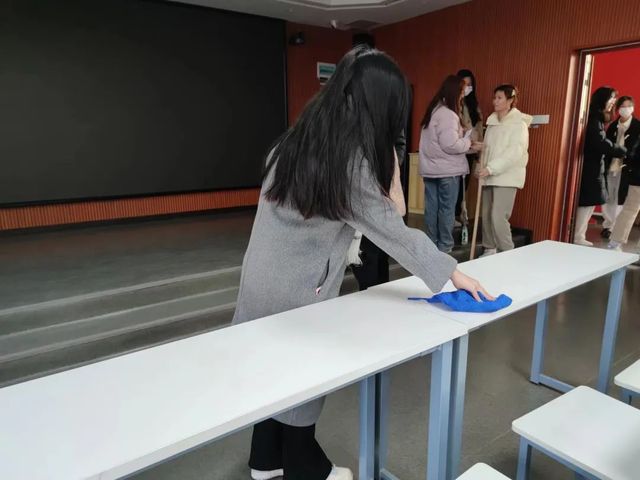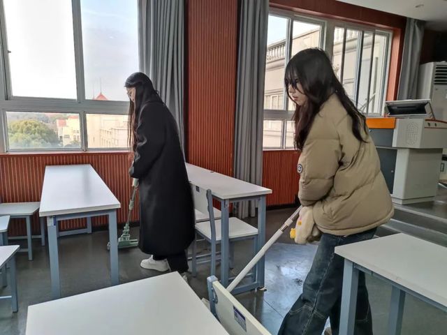 各组组员及时到场,明晰任务后选择合适的劳动工具,紧张又有序地忙碌起来。大家分工明确,以高度的工作热情和责任心开展清扫工作。同学们拾起垃圾、认真擦拭窗台,不放过每个角落,在劳动中表现出高度的政治觉悟、组织纪律、学习能力、工作态度和奉献精神。