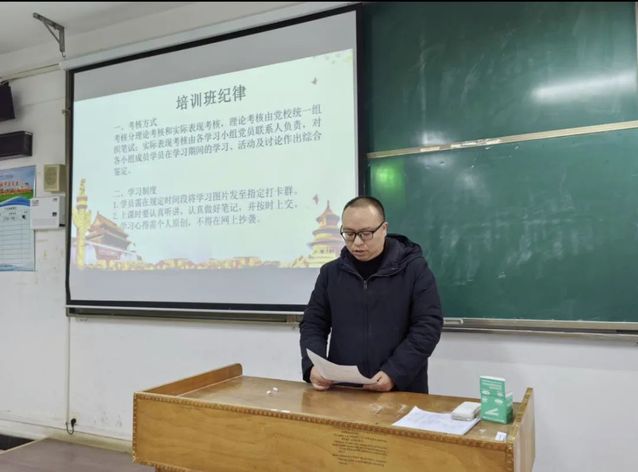 活动伊始,全体起立,奏唱国歌。随后,樊勇宣读培训班纪律。第一,最终考核分为理论考核和实际操作,理论考核将由党校组织;第二,学员们在上培训课时要认真听讲、做好笔记,及时地将笔记上传至指定打卡群中;第三,结业时由党校组织结业考试,通过者将颁发结业证书,并且最终将综合各方表现评选若干名优秀学员。