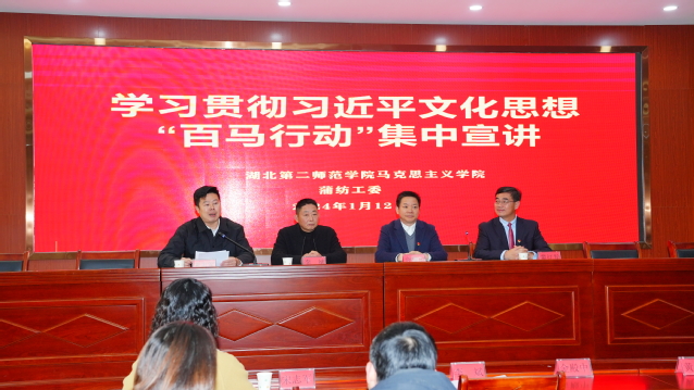 本网讯(通讯员叶梦娇)为深入学习贯彻习近平文化思想,全面贯彻落实全国宣传思想文化工作会议精神。1月12日,学习贯彻习近平文化思想“百马行动”湖北第二师范学院马克思主义学院宣讲团赴赤壁市蒲纺片区开展“百马行动”“五个一”系列活动,采用宣讲报告会、实践调研、文艺演出等形式,把习近平文化思想送到基层一线,助推乡村振兴。