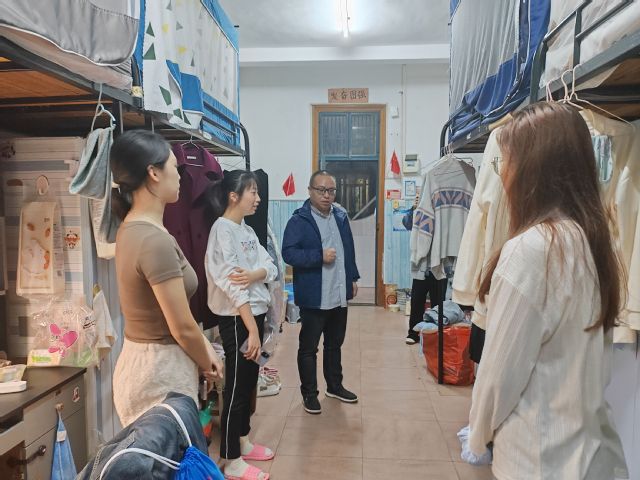 本次排查主要包括寝室用电安全、宿舍环境安全、管制刀具使用等。樊勇首先对同学们表达关心并提醒同学们按时完成学业,随后,他提出同学们应积极参与宿舍安全管理,自觉遵守宿舍管理规定,共同维护宿舍的安全与稳定。“不管是学习还是生活方面,同学们要重点关注宿舍异常情况,及时向学院反应,保护共同生活的宿舍家园”,樊勇说道。