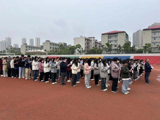 全体师生现场跟读,在朗读中帮助学生系统地学习国家安全知识,弘扬国家安全精神,共同维护国家安全。
