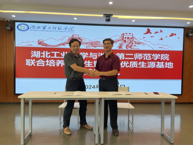 最后,黄红发院长和丁银河院长分别代表湖北第二师范学院与湖北工业大学签署了硕士研究生联合培养及生源基地建设协议书。双方均表示,以优质生源基地建立为契机,奠定硕士研究生联合培养工作的坚实基础,形成合作长效机制,共同开创研究生教育的美好未来。