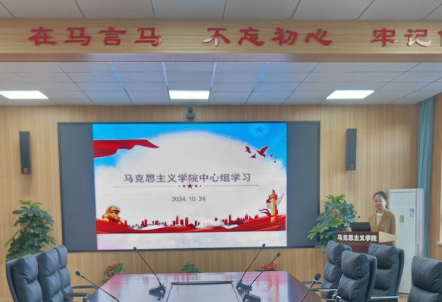 本网讯(通讯员何瑾)10月24日下午,马克思主义学院召开党总支理论学习中心组学习会,认真学习中国共产党第二十届中央委员会第三次全体会议公报以及习近平总书记关于《中共中央关于进一步全面深化改革 推进中国式现代化的决定》的说明;习近平总书记在全国教育大会上的重要讲话为全面推进教育强国建设提供根本遵循;习近平总书记出席全国民族团结进步表彰大会并发表重要讲话;习近平总书记关于力戒形式主义官僚主义以及关于为基层减负的重要论述和重要指示批示精神。党总支书记金殿中主持,宣传委员何瑾领学,学院其他领导班子成员、总支委员、各支部书记及党政办公室、教学办公室、学生办公室主管参加学习。