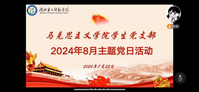 8月22日晚,马克思主义学院学生党支部于线上召开八月主题党日活动。马克思主义学院学生党支部书记樊勇以及全体党员参会。