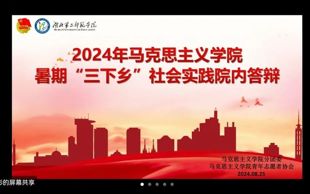 8月25日晚,马克思主义学院于线上举办2024年暑期三下乡院内答辩活动。马克思主义学院党总支副书记李佳、分团委书记樊勇及分团委各学生组织代表担任评委,马克思主义学院暑期各社会实践队伍成员参加会议。